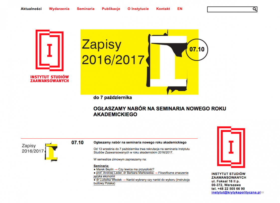• More: http://www.krytykapolityczna.pl/institute-advanced-study